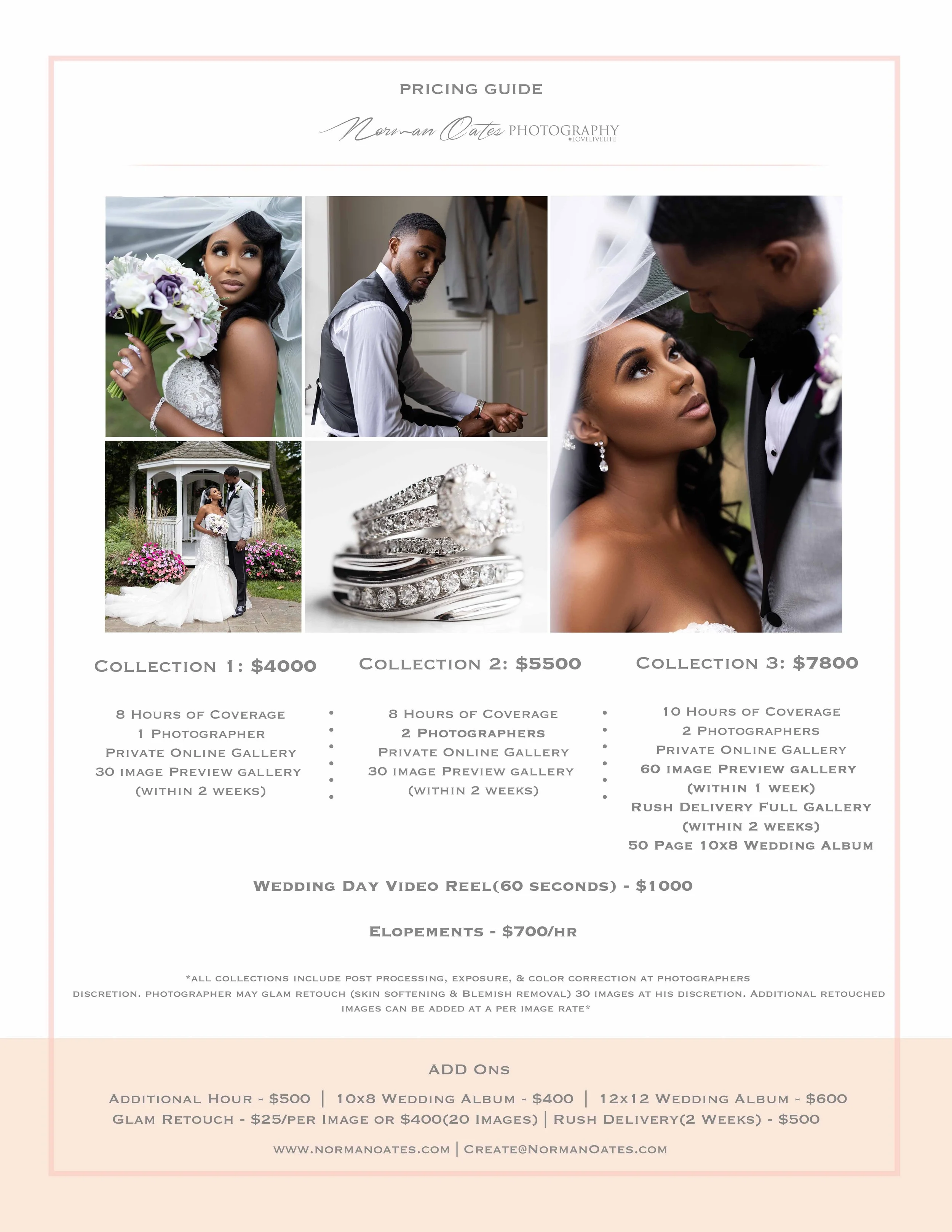 Elopements/Intimate Weddings $700/hr (1-5hours)